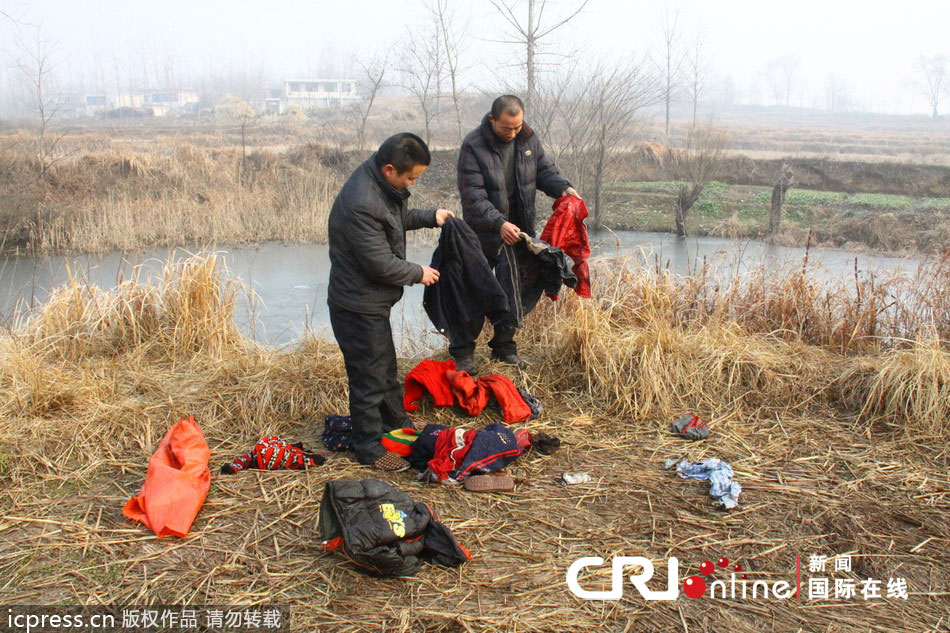 2013年1月9日,两名家长再次来到事发现场,将这些衣物收拾进一个编织袋,然后准备将之埋掉。7日下午,河南省光山县南向店乡天灯小学4名小学生在上学路上溺水身亡