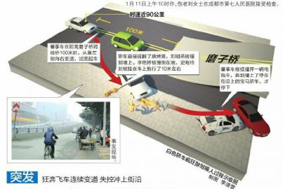 “我看到这辆车从远处开过来,经过我这里时,时速接近90公里。”田敬说,该车在距离磨子桥跨线桥还有100米时,突然从最左侧向右变道,试图超过旁边的一辆轿车。就在超车的一瞬间,意外发生了。